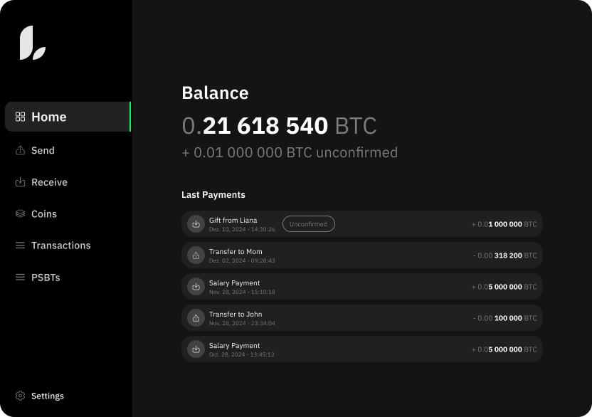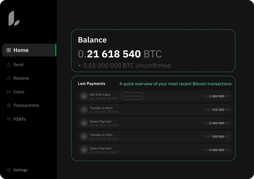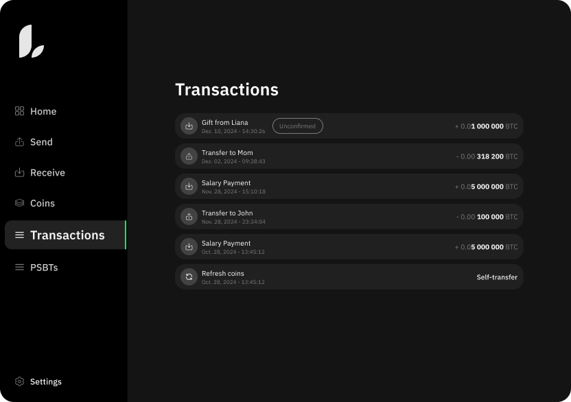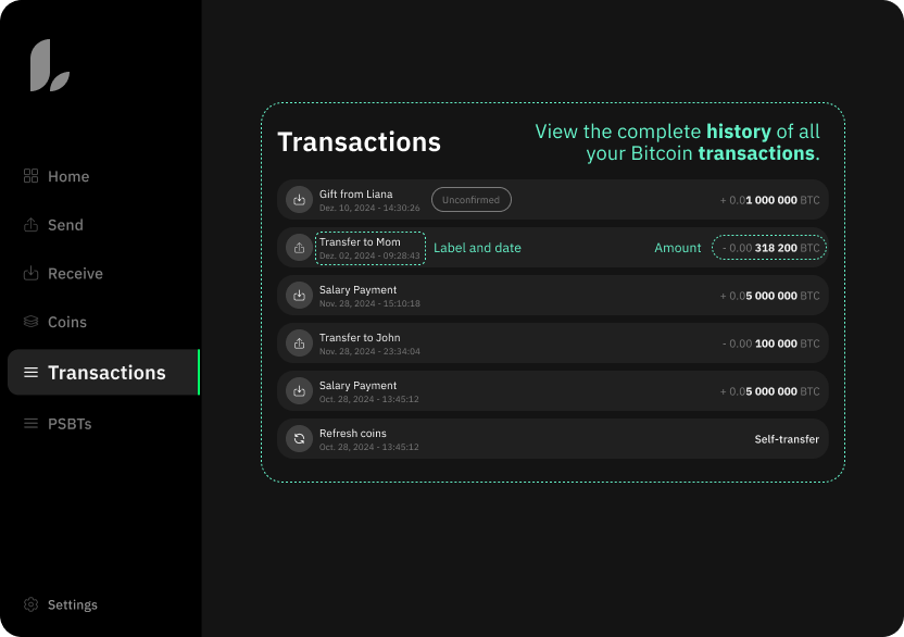Review your entire transaction history in one place, making it easy to stay on top of your Bitcoin activity.